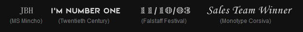 Add a personalized message, initials or custom artwork to the back of most of the styles in the lineup. A variety of type fonts and sizes are available including these popular examples: